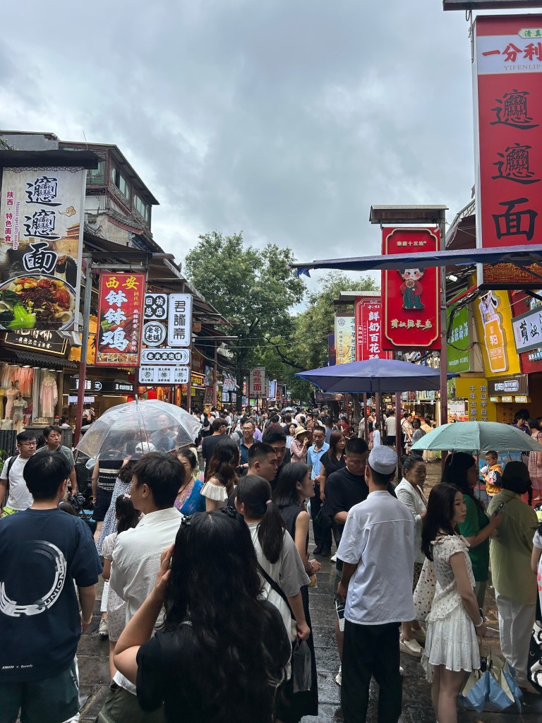 Along with its historical importance, Xi’an also has the distinct pleasure of being one of the hottest, if not the hottest, cities in all of China. In an inverse of Yunnan’s perpetual springtime weather I mentioned in the May 2025 installment, various topographical factors conspire to make this area an absolute furnace in the peak of summer, despite being far north of Chengdu in terms of latitude. While we were there, temperatures peaked one day at 43C, around 109 degrees Fahrenheit.